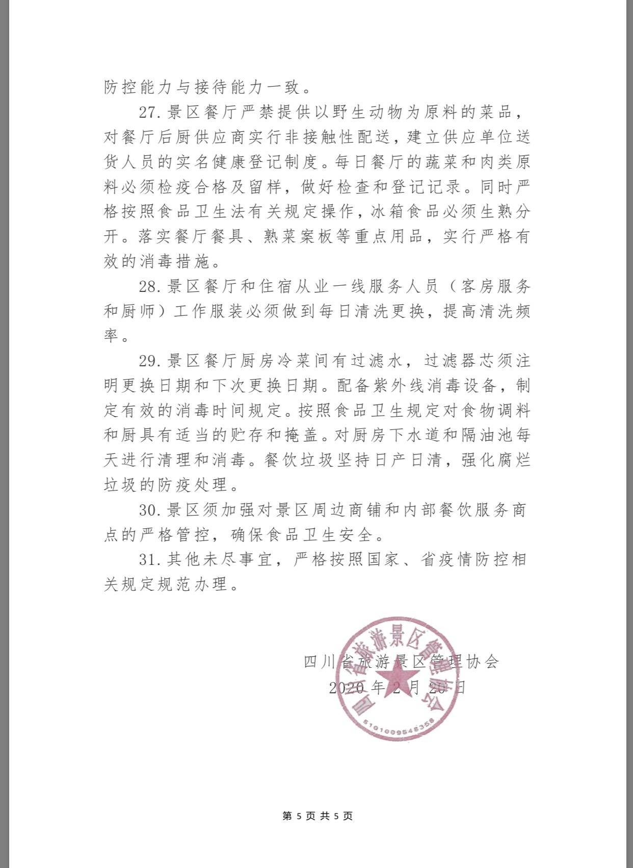 2月20日,四川省旅游景區(qū)管理協(xié)會(huì)對(duì)外發(fā)布《四川省新型冠狀肺炎疫情防控期間旅游景區(qū)開(kāi)放工作指南》(以下簡(jiǎn)稱(chēng)“《指南》”),對(duì)此前因疫情防控暫時(shí)關(guān)閉的景區(qū)恢復(fù)開(kāi)放“指點(diǎn)迷津”,提出景區(qū)須通過(guò)網(wǎng)絡(luò)實(shí)名制購(gòu)票,日接待量不超過(guò)日最大承載量的50%,景區(qū)要設(shè)立臨時(shí)隔離點(diǎn)等。