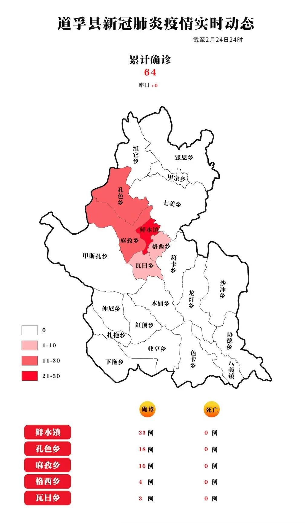 | 道孚縣 | 64 | 0