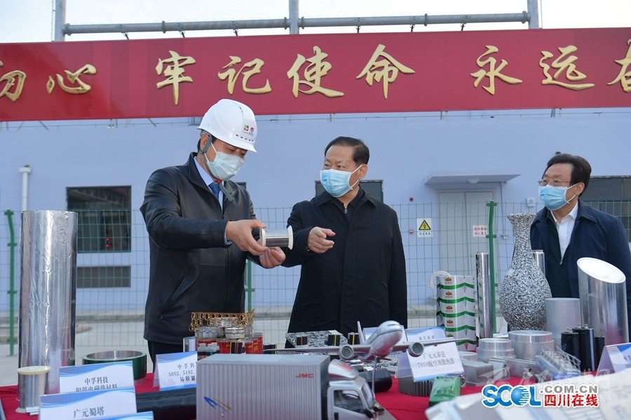 2月24日,彭清華書記到廣元經(jīng)開(kāi)區(qū)中孚鋁業(yè)公司調(diào)研,觀看企業(yè)產(chǎn)品展示,了解電解鋁產(chǎn)業(yè)發(fā)展情況。