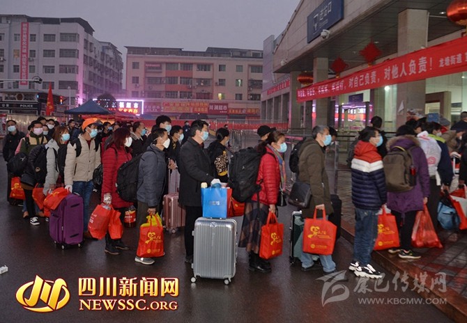 2月21日早上7時58分,乘載著1058名廣安籍農(nóng)民工的K4201返崗專列,準時出發(fā)駛往廣州站。這是今年春節(jié)后四川省開往各地的農(nóng)民工返崗專列中人數(shù)最多的一趟。從家門口到廠房,都有專車接送,廣安籍農(nóng)民工享受的是“一條龍”無縫對接服務(wù)。