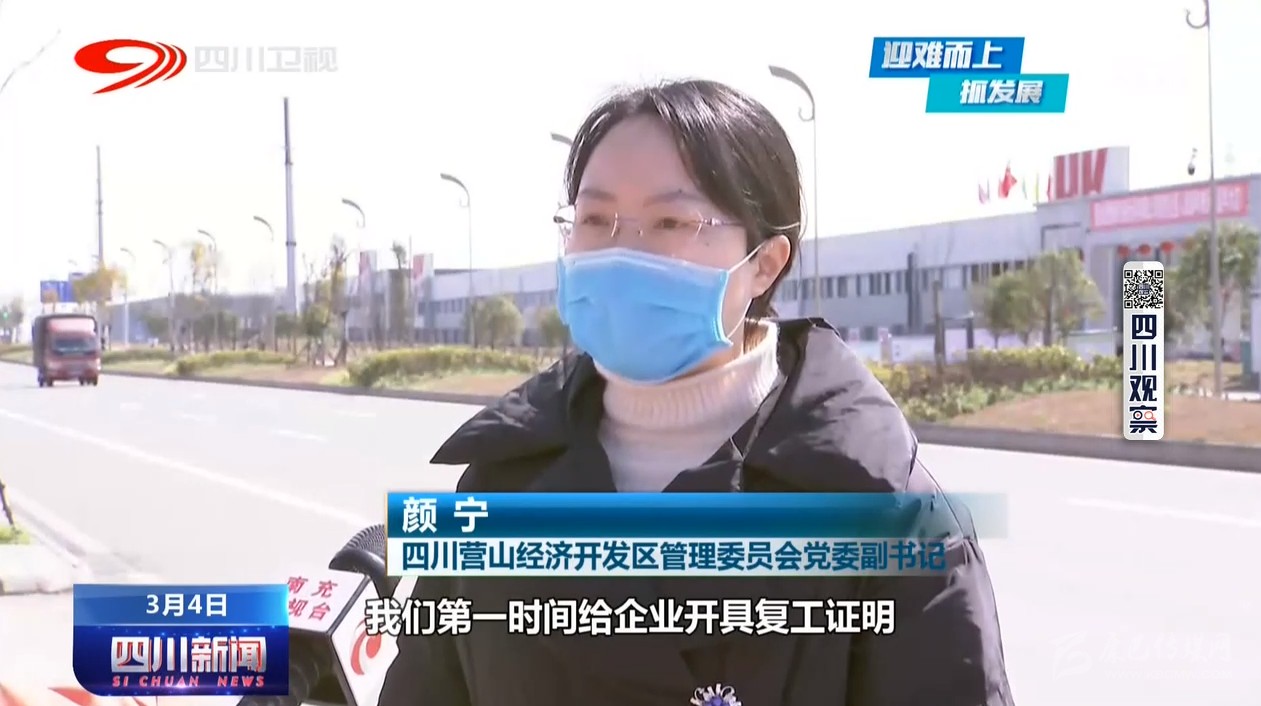 四川營山經(jīng)濟(jì)開發(fā)區(qū)管理委員會黨委副書記 顏寧:我們第一時間給企業(yè)開具復(fù)工證明,并協(xié)調(diào)發(fā)改(部門),開具這個快速通行證,協(xié)調(diào)那個社區(qū),給他們開具那個健康證明,確保企業(yè)的產(chǎn)品能夠第一時間運(yùn)出去。