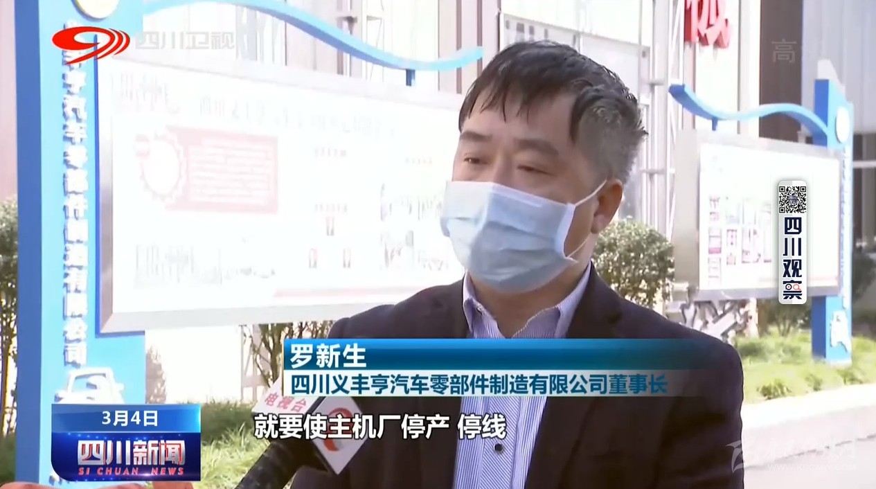 四川義豐亨汽車零部件制造有限公司董事長 羅新生:如果產(chǎn)品運(yùn)不出去,就要使主機(jī)廠停產(chǎn)停線,這樣就要造成我們企業(yè)(接)不能再繼續(xù)生產(chǎn),嚴(yán)重點就要取消我們企業(yè)的配套資質(zhì)。