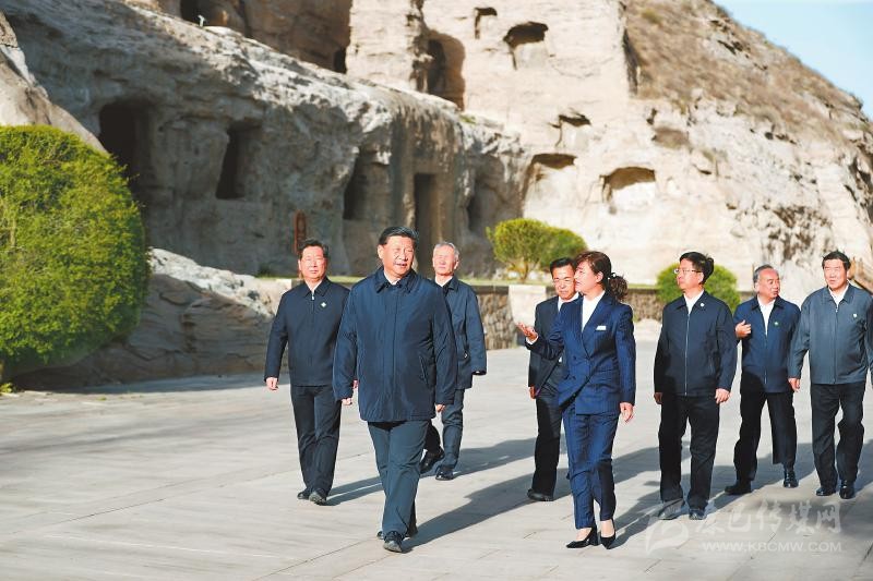 傍晚時分,習近平來到云岡石窟考察。云岡石窟始建于1500多年前,是中外文化、中國少數(shù)民族文化和中原文化、佛教藝術與石刻藝術相融合的一座文化藝術寶庫。習近平仔細察看雕塑、壁畫,不時向工作人員詢問石窟歷史文化遺產保護等情況。他強調,云岡石窟是世界文化遺產,保護好云岡石窟,不僅具有中國意義,而且具有世界意義。歷史文化遺產是不可再生、不可替代的寶貴資源,要始終把保護放在第一位。發(fā)展旅游要以保護為前提,不能過度商業(yè)化,讓旅游成為人們感悟中華文化、增強文化自信的過程。要深入挖掘云岡石窟蘊含的各民族交往交流交融的歷史內涵,增強中華民族共同體意識。游客們看到總書記,紛紛高呼:“總書記好!”習近平向大家揮手致意,并叮囑景區(qū)工作人員在常態(tài)化疫情防控下要加強引導、控制人流,避免因大規(guī)模人員聚集引發(fā)疫情復燃。