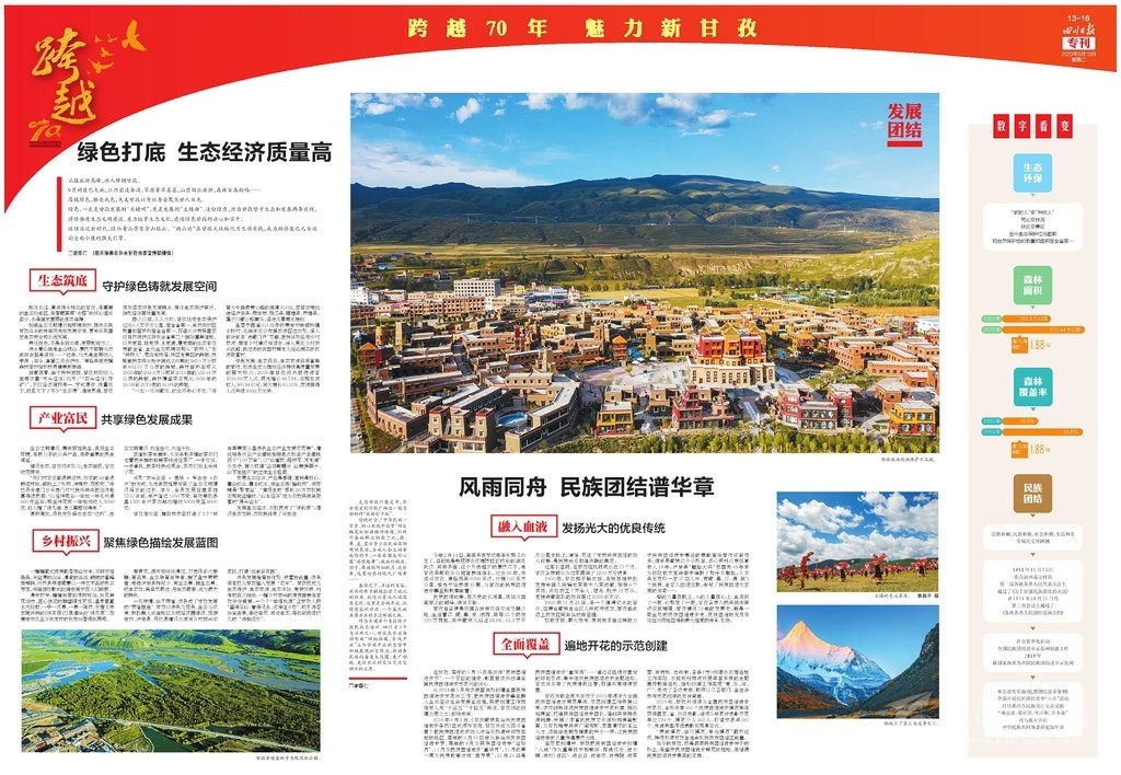 第三連版聚焦“發(fā)展、團結(jié)”,關(guān)注綠色生態(tài)保護和民族團結(jié),突出甘孜的川西北生態(tài)示范區(qū)定位和藏族自治州特色發(fā)展。