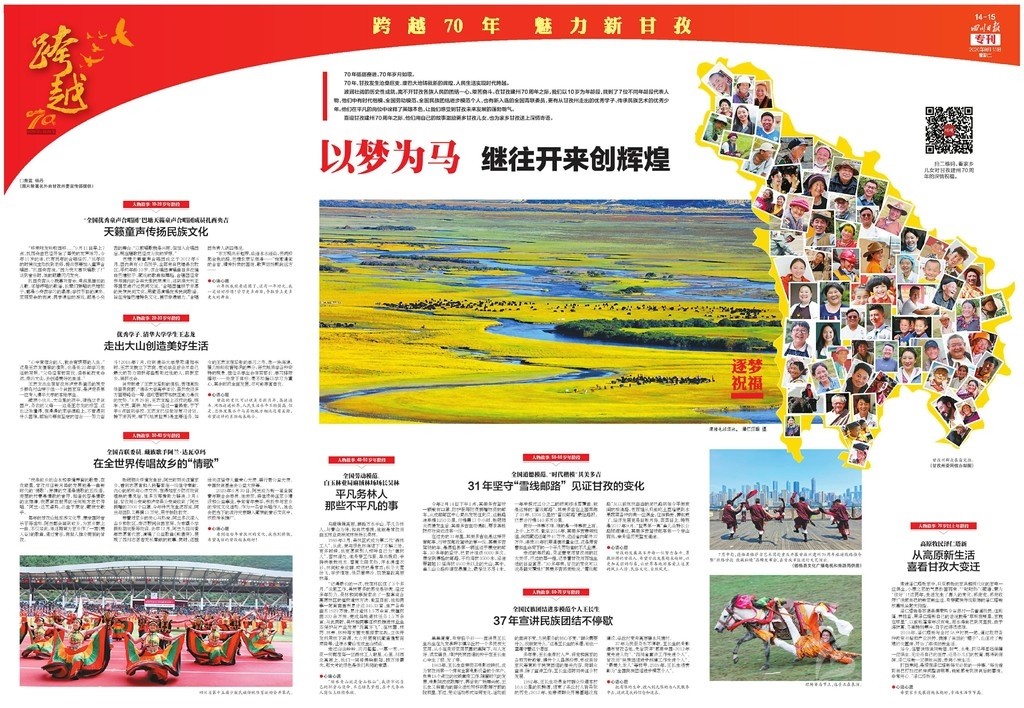 為慶祝甘孜建州70周年,《四川日報》于9月15日推出八連版特別報道,整體以紅色打底,充滿喜慶的祝福。