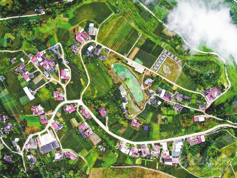 2020年8月17日海子坪村航拍。甘孜州瀘定縣海子坪村打造的“高科農(nóng)技+高端民宿”吸引了眾多游客前來(lái)觀(guān)光旅游,村民的生活也發(fā)生著美麗的蛻變。 四川日?qǐng)?bào)全媒體記者衡昌輝攝