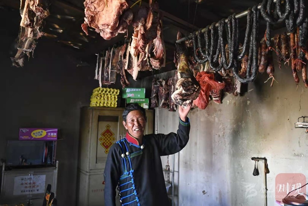 吉地爾子家懸掛著臘肉、香腸。 何勤華 楊樹(shù) 攝