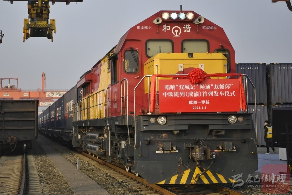 1月1日上午10時(shí)15分,重慶、成都兩地同時(shí)發(fā)出2021年中歐班列(成渝)第一趟列車(chē)。
