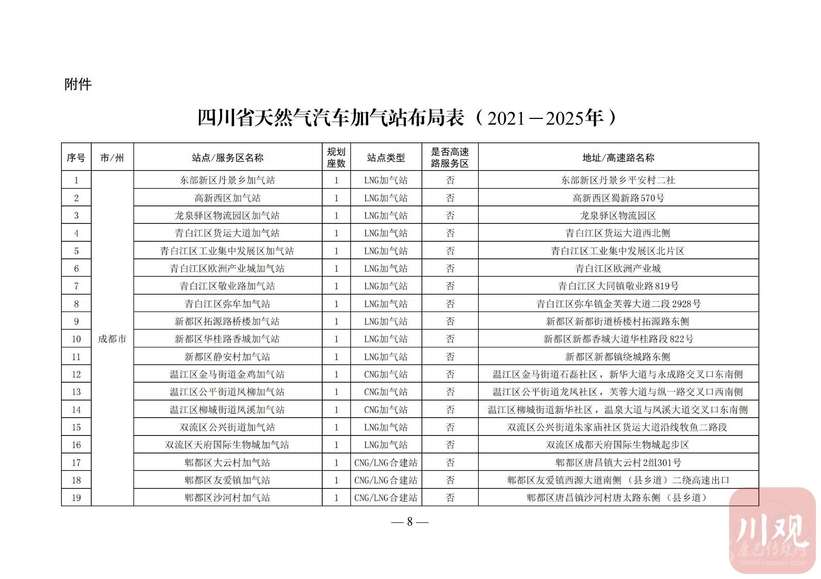 日前,四川省發(fā)展和改革委員會(huì)、四川省能源局印發(fā)《四川省天然氣汽車加氣站布局方案(2021-2025年)》(以下簡稱《方案》)?!斗桨浮诽岢龅?025年,四川將規(guī)劃新建加氣站500座(含高速公路服務(wù)區(qū)141座),其中,CNG加氣站15座、LNG加氣站401座、L-CNG加氣站8座、CNG/LNG合建站76座。