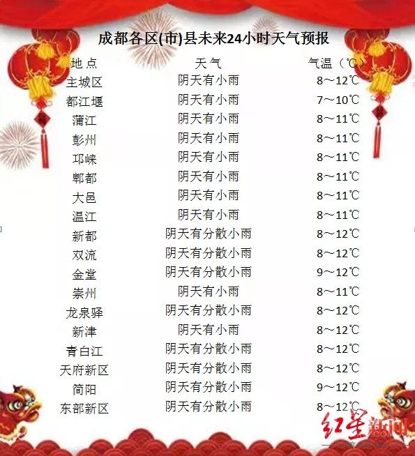 成都方面,預(yù)計(jì)未來(lái)七天,全市以陰冷天氣為主,氣溫逐步降低,且雨日較多。高海拔山區(qū)有雨夾雪或小雪,日平均氣溫將從當(dāng)前的10℃左右下降至4℃左右;最高氣溫降幅將達(dá)10℃左右。
