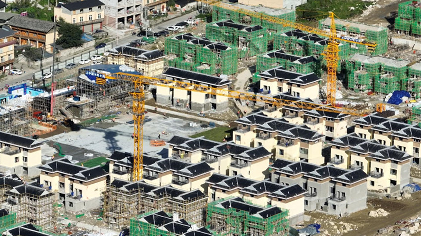 圖為海螺溝災(zāi)后恢復(fù)重建統(tǒng)規(guī)統(tǒng)建安置點(diǎn)建設(shè)現(xiàn)場。 記者 肖宵 攝