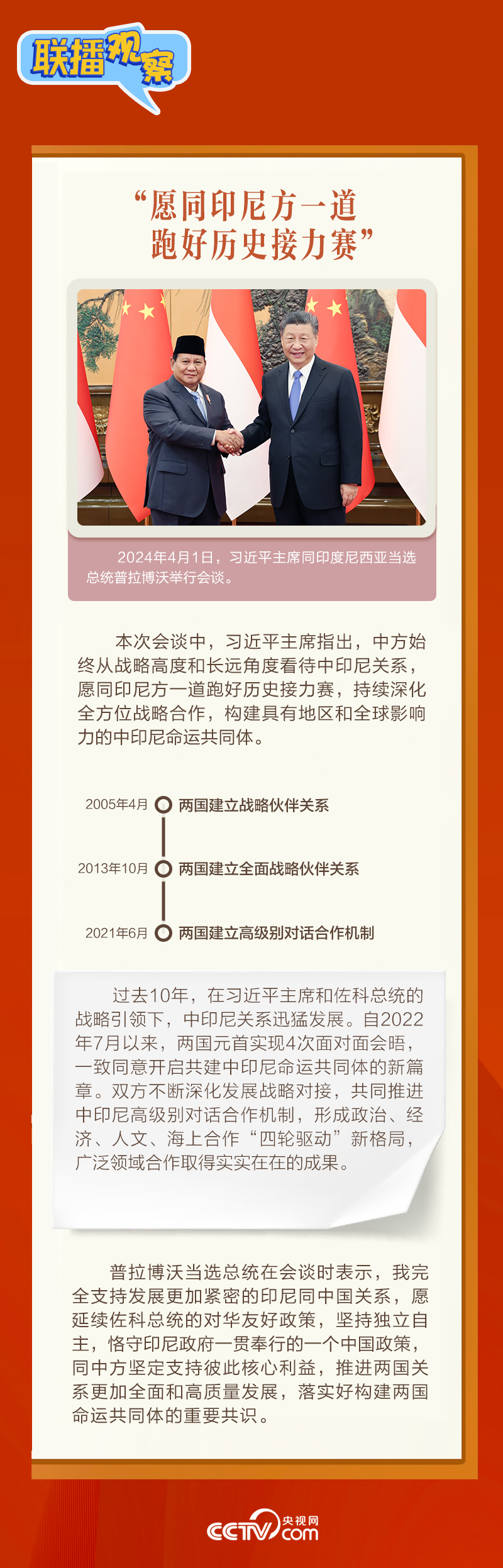 聯(lián)播+“你將中國作為當(dāng)選后的首訪國家,在穆斯林齋月期間專程來華,體現(xiàn)了對中印尼關(guān)系的高度重視。”4月1日下午,習(xí)近平主席在北京人民大會堂同印度尼西亞當(dāng)選總統(tǒng)普拉博沃舉行會談。