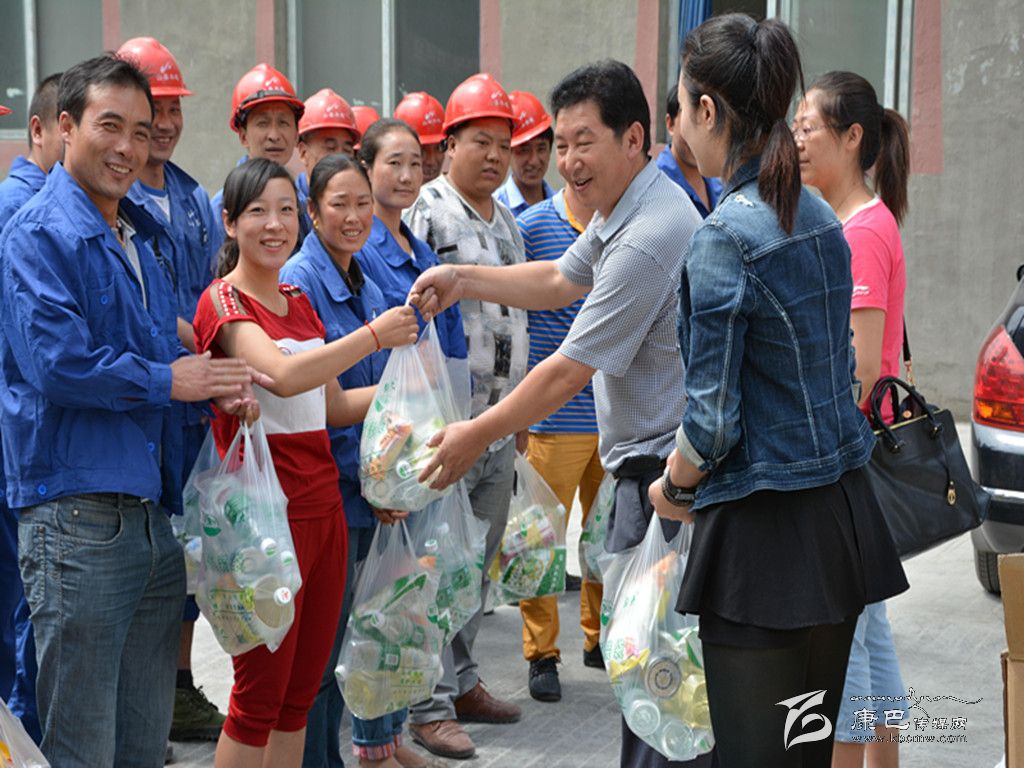 向工人們發(fā)放礦泉水、毛巾等。