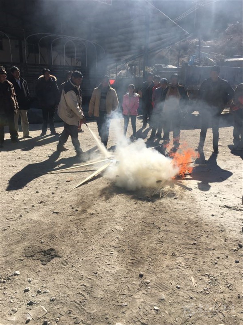 本網訊(何才華 文/圖)“滅火器使用時,要先除掉鉛封、拔掉保險銷,左手握噴管、右手提壓把,在距離火焰兩米左右的地方用右手用力壓下壓把……”12月15日,鄉(xiāng)城縣香巴拉鎮(zhèn)集中為該鎮(zhèn)9村534戶群眾集中發(fā)放滅火器時,鎮(zhèn)長羅斌用藏語耐心地向村民講解滅火器的使用方法。