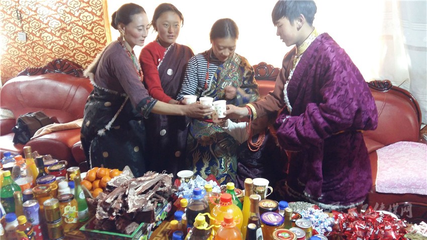 根秋卓瑪一家是俄多瑪鄉(xiāng)的村民,初一一大早,根秋卓瑪就穿上節(jié)日的盛裝?!敖裉煳覀円涯曦洈[放出來,等親戚朋友祈?;貋?,我們一家就會(huì)圍坐在一起,拉著家常、吃著美食、唱著山歌,高高興興歡度藏歷新年?!备镒楷斦f。