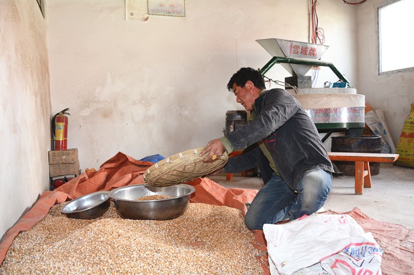 事實上,小作坊的準(zhǔn)確名稱是仁果下村電磨坊合作社,屬于村里的集體經(jīng)濟(jì),廠房的建設(shè)、機(jī)器的購買都來源于扶貧專項資金。建成后,合作社提供崗位,讓村里的貧困戶來操作運營。于是,洛桑降措成為了這里的“主人”。