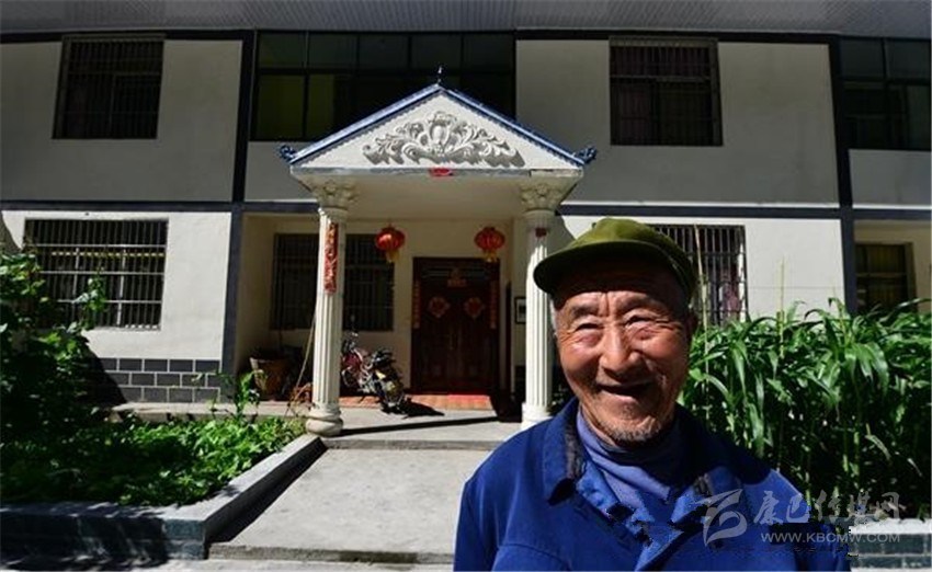 大火山移民新村里,趙中云老人正在家門(mén)口“顯擺”自家好房子。