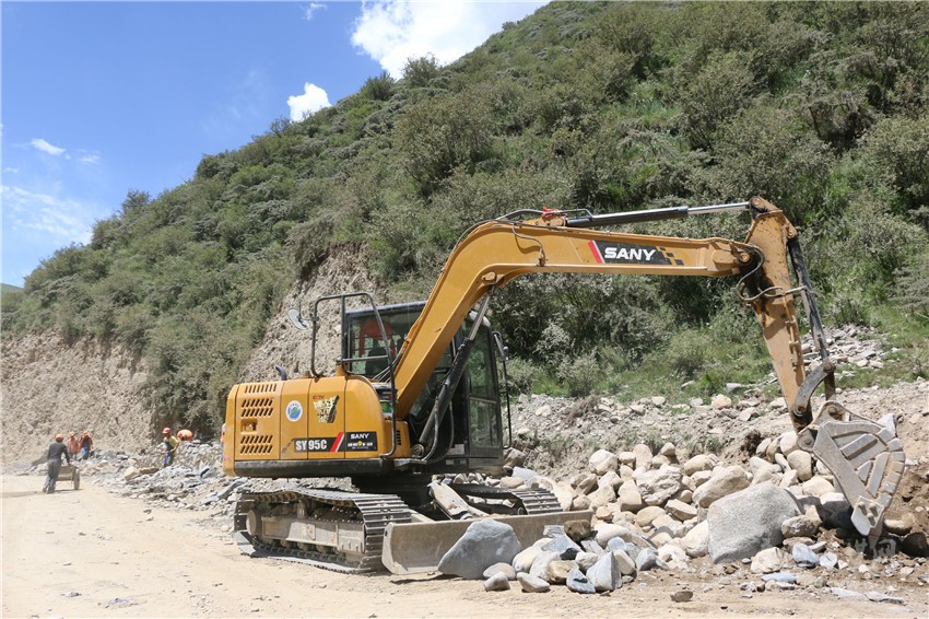 “大家再加把勁哦,早點(diǎn)把公路堡坎砌好,就可以平整路面了。”7月25日,在甘孜縣城前往扎科鄉(xiāng)的甘扎路上,修砌路基的工人們頭頂烈日,揮汗如雨,一臺(tái)臺(tái)工程機(jī)械或是揮舞著長(zhǎng)臂,或是平整著地面,熱火朝天的建設(shè)場(chǎng)面隨處可見。