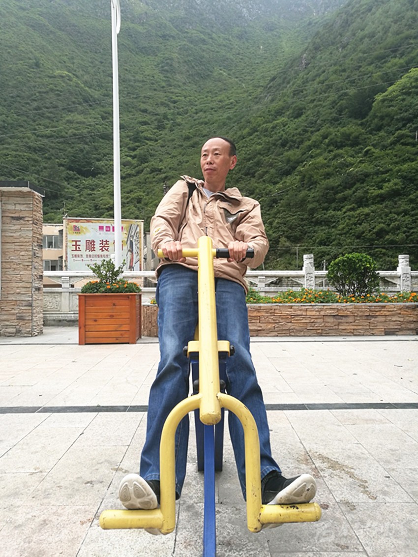 今年57歲的多吉,來自德格,前段時間做完體檢后,就一直住在康定。在這期間,他每天早上都會散步半小時到健身器材處鍛煉,當記者問他對是否對全民健身有了解時,他說:“全民健身就是要大家都運動起來,所有人都能擁有一個好身體?,F(xiàn)在很多人上班工作忙,下班應(yīng)酬、上網(wǎng)忙,嚴重缺乏鍛煉;像我一樣上了年齡的就更要鍛煉,這不僅是對自己的身體負責,更是對兒女負責?!睋?jù)了解,多吉在老家德格,還有一個鍛煉基地——印經(jīng)院,每天在那里轉(zhuǎn)經(jīng)不僅讓他的身體得到鍛煉,更讓他的心靈得到沉淀。
