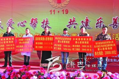 本網(wǎng)訊(何才華 文/圖)11月18日,鄉(xiāng)城縣愛(ài)心慈善募捐活動(dòng)在該縣香巴拉休閑廣場(chǎng)舉行,來(lái)自全縣的機(jī)關(guān)干部、宗教界代表、個(gè)體工商戶代表、建筑施工企業(yè)等各界人士近2000人為需要救助者獻(xiàn)出自己的一份愛(ài)心?;顒?dòng)現(xiàn)場(chǎng)募捐資金532998元。