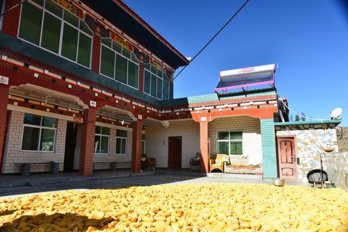初夏的清晨,有隔夜晶瑩的露珠在花瓣上閃閃發(fā)光,迎接著朝陽(yáng)?!皝?lái)來(lái)來(lái),酥油茶都倒好了,大家先到樓上喝茶,今天中午美酒佳肴管吃管飽哦!”36歲牧民來(lái)讓登真熱情的招呼著客人們?!袄?,先不織了,趕緊,去把那兩箱好酒找出來(lái)!”“對(duì)了,快打電話,把你哥也喊過(guò)來(lái)陪下客人些(客人們)!”……這“管吃管飽”的“好酒”和熱情的服務(wù)接待,正悄無(wú)聲息的向大家展示著改革開(kāi)放40年來(lái)農(nóng)牧區(qū)的巨大變化。