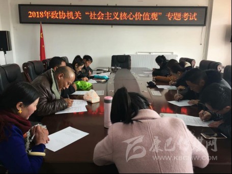 為書面測試廣大干部職工“社會主義核心價(jià)值觀”的實(shí)踐意義,11月29日下午2:00,2018年石渠縣政協(xié)機(jī)關(guān)“社會主義核心價(jià)值觀”專題考試,在縣政協(xié)黨組成員、副主席楊國華的監(jiān)考下開始。其書面閉卷筆試為:單項(xiàng)和多項(xiàng)選擇題及簡答“三嚴(yán)三實(shí)”與“社會主義核心價(jià)值觀”內(nèi)容和論述題:一是結(jié)合藏區(qū)與自己的思想實(shí)際及政協(xié)工作特點(diǎn),有條理的闡述如何開展“社會主義核心價(jià)值觀”實(shí)踐活動;二是踐行“社會主義核心價(jià)值觀”的重大意義及措施、方法等。通過一小時(shí)左右的臨場測試,應(yīng)考的政協(xié)機(jī)關(guān)干部職工含臨時(shí)工、駕駛員、實(shí)習(xí)生等,人人均遞交了滿意的答卷。