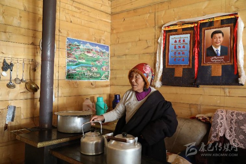 “我是村上第一個(gè)掛習(xí)主席唐卡畫像的脫貧戶!這幅黑白唐卡是我入住新房當(dāng)天掛的;幾天后,畫師又送我一幅彩色的,于是我就把這兩幅唐卡并排掛在客廳里。如今,全村家家戶戶都在客廳里掛上了習(xí)主席彩色唐卡。要是沒有習(xí)主席提出實(shí)施精準(zhǔn)扶貧,恐怕我們現(xiàn)在還住在山上受窮!”11月28日上午,當(dāng)筆者來到距德格縣城37公里的龔埡鄉(xiāng)雨托村采訪時(shí),77歲的建檔立卡貧困戶呷瑪西繞指著習(xí)主席唐卡畫像激動地說。