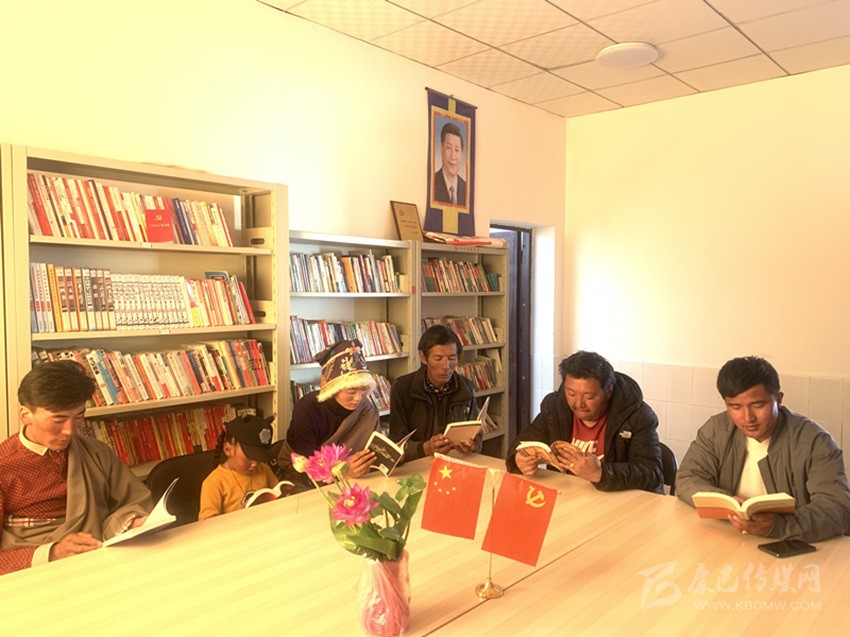 “平時(shí)只要有空,我們就到這里來(lái)聚會(huì),看看書(shū)、聊聊天,有時(shí)村里會(huì)組織大家集中收看宣傳黨委政府政策的宣傳片,讓我們能及時(shí)了解國(guó)家方針政策?!?月13日午飯后,色達(dá)縣大則鄉(xiāng)厚門(mén)村的文化活動(dòng)室,和往常一樣,又陸陸續(xù)續(xù)迎來(lái)三三兩兩的村民們。一樓的圖書(shū)室,幾位村民正在安靜地看書(shū),有漢語(yǔ)的,也有藏語(yǔ)的,他們身后兩面的書(shū)架上,收藏了上萬(wàn)本各類(lèi)書(shū)籍,其中藏語(yǔ)書(shū)籍占了一半以上,還有一些光碟,都是歷次中央、省、州重大會(huì)議的宣講內(nèi)容。在二樓的會(huì)客室,49歲的村民擁巴和鄉(xiāng)親們正熱烈地聊著今年脫貧攻堅(jiān)的形勢(shì)。