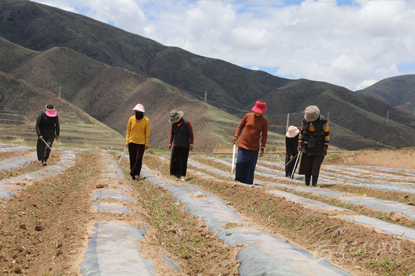 “把蔬菜種植技術(shù)學(xué)精通了,我就可以回家種菜,如果產(chǎn)量拿得上去,靠賣(mài)蔬菜,一年的收入也不少?!卑赚斍湔f(shuō),外出打工太遠(yuǎn),照顧不到家庭,而且除了開(kāi)銷(xiāo)一天還掙不到100元。她的丈夫澤翁降村帶著大兒子外出打工,去年3—6月就掙了2.3萬(wàn)元,定布村千畝蔬菜、中藏藥材高產(chǎn)有機(jī)示范種植基地開(kāi)建后,丈夫用自己的拖拉機(jī)在工地務(wù)工,一天給的工錢(qián)是500元,做了35天就掙了2萬(wàn)多元。