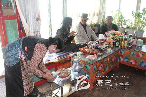 說話間,聽見女兒四郎曲珍和媽媽從廚房里端著牛肉包子走了出來。廚房里冰箱、高壓電飯煲等家用電器一應(yīng)俱全,他興激動(dòng)地說:“現(xiàn)在,縣上大力實(shí)施農(nóng)村的五通工程,用電也十分方便;以前打酥油茶都用木桶,現(xiàn)在有高原專用的打茶機(jī),既快捷又方便;……”