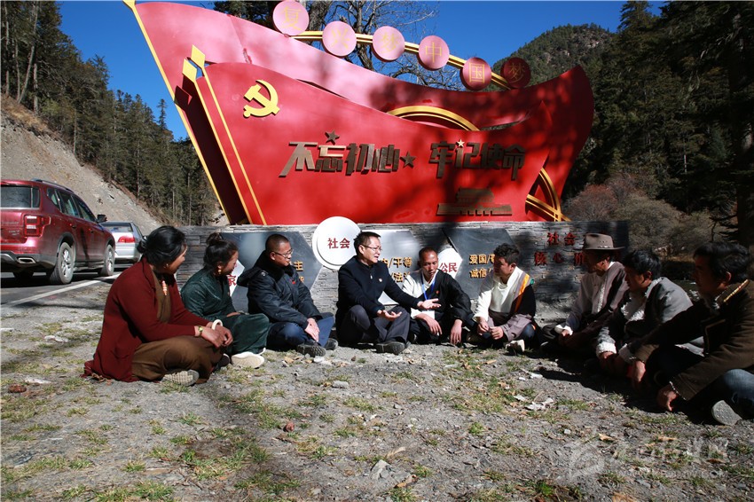 11月20日,記者乘坐的采訪車從稻城亞丁景區(qū)入口方向拐了個彎,沿著平坦的柏油路前行了26公里,木拉鄉(xiāng)麻格同村便映入眼簾,一塊黨旗造型的文化墻上寫著“不忘初心、牢記使命”幾個大字,墻體下方刻有社會主義核心價值觀內容,讓人眼前一亮。幾個村民圍坐在一起,商量著什么。記者停車詢問得知,四川旅投集團駐村干部王雷正在和村“兩委”以及部分村民代表,商議動工修建棧道,為游客開展馬幫服務的事情。