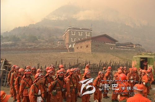 爐霍專業(yè)森林撲火隊隊長阿代介紹說:“接到命令后,我們立刻組織34名撲火隊員,緊急出動四輛森林消防車和一輛行動車趕赴火場。因火場山高路陡,撲火器材只能用人工的方式運(yùn)送到一線,70公斤的器材兩個人扛,15斤一盤的水袋一個人一次背兩三盤,有的地方需要涉過刺骨冰冷的河水到達(dá)一線,許多隊員都出現(xiàn)了體力透支的現(xiàn)象,但沒有一個人叫苦喊累。”