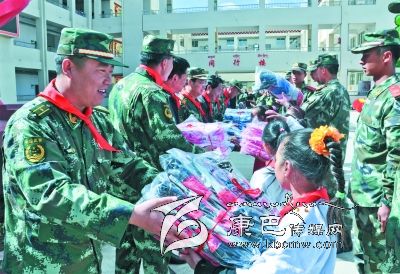 儀式上,8722部隊(duì)向?qū)W校贈(zèng)送了價(jià)值萬(wàn)余元的學(xué)習(xí)用品,拿著裝有鉛筆、水彩筆等各種文具的“愛(ài)心書(shū)包”,孩子們興奮不已。12歲的藏族女生登真啟珍告訴筆者:“今年的‘六一’兒童節(jié),武警部隊(duì)的叔叔們專(zhuān)門(mén)來(lái)看望我們,還送來(lái)了禮物,我感到特別開(kāi)心。”儀式上,少先隊(duì)員們給參加慰問(wèn)的部隊(duì)領(lǐng)導(dǎo)戴上鮮艷的紅領(lǐng)巾,孩子們還表演了精心排練的節(jié)目。一張張燦爛的笑臉,一陣陣蕩漾心扉的歌聲,傳遞著駐訓(xùn)武警部隊(duì)與當(dāng)?shù)厝罕姖鉂獾聂~(yú)水深情。