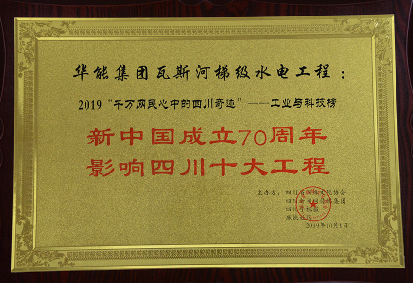 作為在國(guó)內(nèi)產(chǎn)生巨大影響的四川境內(nèi)的標(biāo)志性工程,2019年10月,瓦斯河梯級(jí)水電工程成功入選“新中國(guó)成立70周年影響四川十大工程”工業(yè)與科技榜。