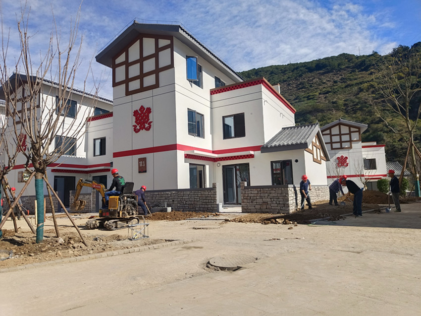 11月5日,記者走進(jìn)瀘定縣德威鎮(zhèn)奎武村“9·5”瀘定地震災(zāi)后重建集中安置點(diǎn),只見(jiàn)一幢幢繪有“如意結(jié)”和穿斗裝飾等瀘定傳統(tǒng)建筑元素以及“瀘定紅”“紅飄帶”等民族特色的安置房沿大渡河畔依次排開(kāi),一條條寬敞平整的水泥硬化道路將這些風(fēng)貌一致、戶型合理、結(jié)構(gòu)安全的安置房屋串聯(lián)起來(lái)。幾十名工人正在安置點(diǎn)內(nèi)忙碌,有的在鋪設(shè)路面、有的在栽種綠化樹(shù)、有的在搬運(yùn)廢渣……,拿到鑰匙的部分村民正在進(jìn)行室內(nèi)裝修,現(xiàn)場(chǎng)一派繁忙景象。