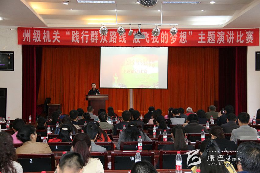 9月11日,州直屬機(jī)關(guān)工委主辦了“踐行群眾路線 ,放飛我的夢想”主題演講比賽,18名來自州級機(jī)關(guān)的黨員干部展開了激烈角逐。選手們聲情并茂地講述了一個(gè)個(gè)感人至深的故事。民干校的選手用關(guān)愛學(xué)生的生動(dòng)事例,展現(xiàn)了共產(chǎn)黨員的宗旨和使命;州特警隊(duì)選手講述了自己和戰(zhàn)友立足崗位、踐行群眾路線的動(dòng)人故事;州人社局的選手講述了用真情為群眾奉獻(xiàn)自己一份微薄力量……一個(gè)個(gè)生動(dòng)的故事,感染了現(xiàn)場的每一位觀眾。圖為演講比賽現(xiàn)場。