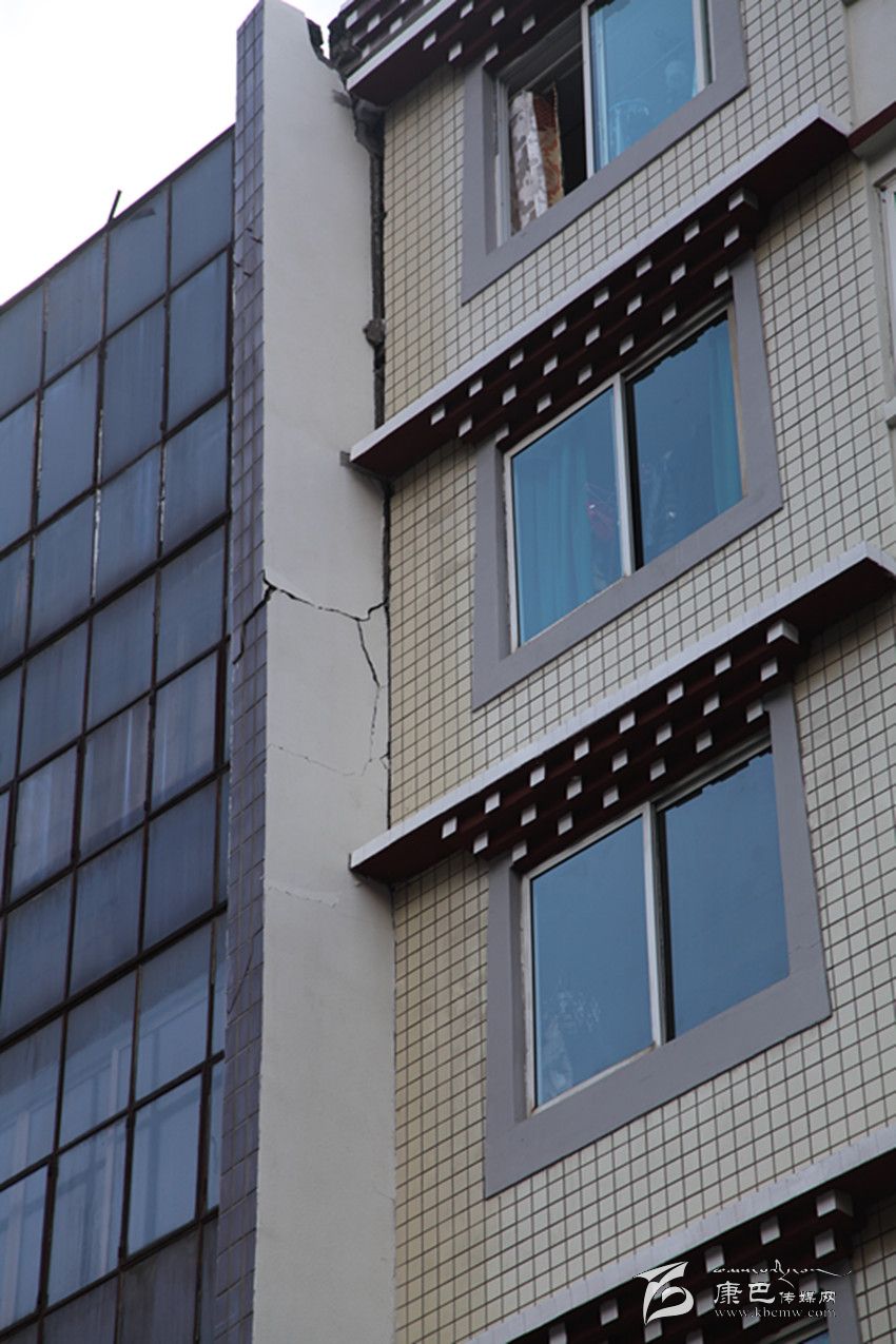 剛沖出報(bào)社不遠(yuǎn),記者就發(fā)現(xiàn)光明路光明小區(qū)附近的小巷中有一些外墻磚不規(guī)則地散落在地上,抬頭一看,發(fā)現(xiàn)一幢建筑的外墻已經(jīng)脫落了一大塊;在州統(tǒng)計(jì)局上側(cè),一幢建筑外墻出現(xiàn)了裂縫,過往的人們都在紛紛觀望,還有人在用手機(jī)拍攝。在西大街,有一幢建筑的陽臺(tái)出現(xiàn)移位,與主體建筑間形成了裂縫;在州人民醫(yī)院,門診部大樓出現(xiàn)了嚴(yán)重裂縫,大樓內(nèi)的人員已經(jīng)全部撤離。記者在采訪中發(fā)現(xiàn),此次地震使康定城區(qū)內(nèi)建筑出現(xiàn)了不同程度的外墻磚脫落、裂縫等,城郊有圍墻倒塌的情況發(fā)生,城區(qū)沒有出現(xiàn)建筑物倒塌的情況。