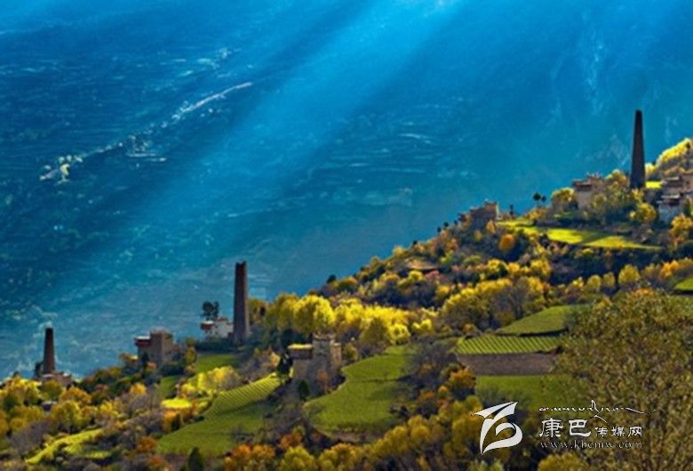 “甲居”,藏語是百戶人家之意。整個山寨依著起伏的山勢迤邐連綿,在相對高差近千米的山坡上,一幢幢藏式樓房灑落在綠樹叢中?;蛐橇_棋布,或稠密集中,或在高山懸崖上,或在河壩綠茵間,不時炊煙裊裊、煙云繚繞,與充滿靈氣的山谷、清澈的溪流、皚皚的雪峰一起,將田園牧歌式的畫卷展示在人們眼前,以一種藝術(shù)品的形態(tài)存在。