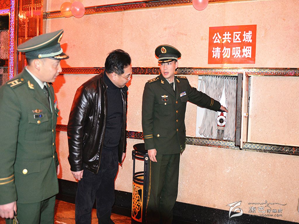 公安消防干警正在檢查消防設(shè)施。