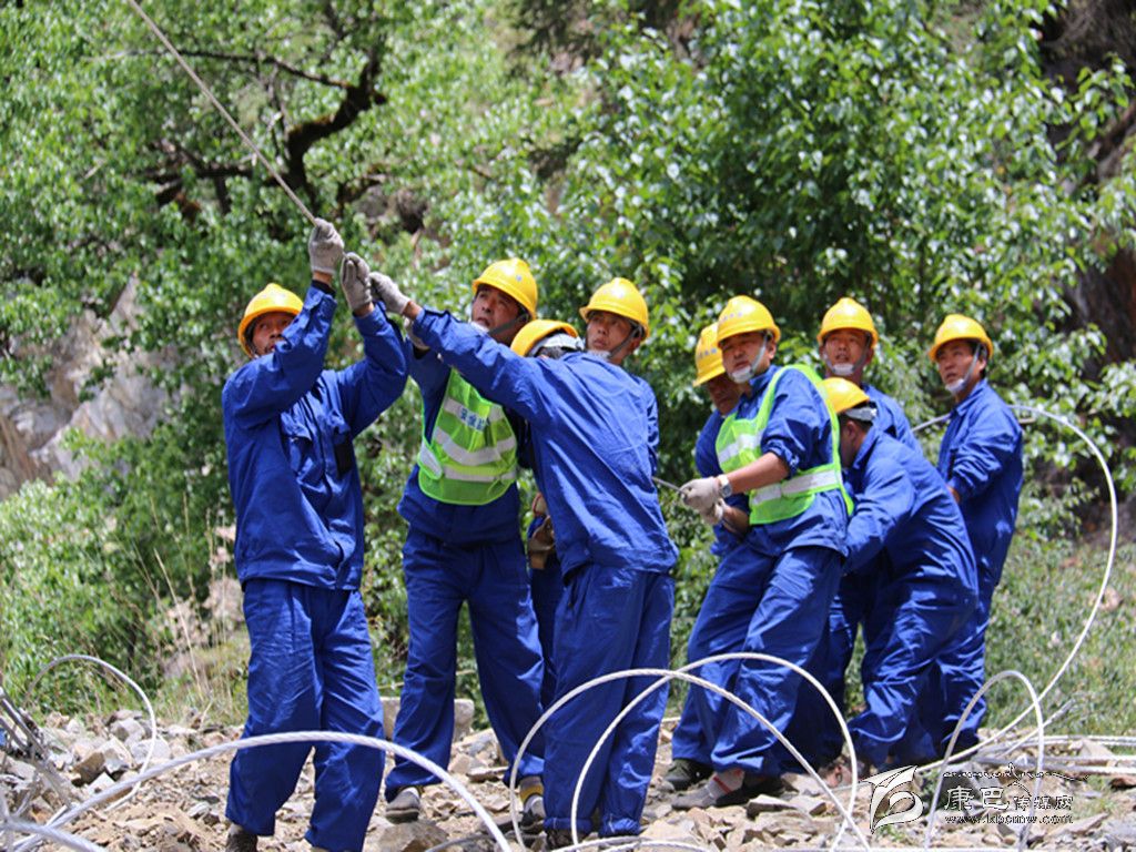 “辛苦”二字同樣印在工程管理者的工作中。手握對(duì)講機(jī)、身穿工裝的工程項(xiàng)目負(fù)責(zé)人龍森,此刻正頂著烈日在工地對(duì)一位工人叮囑施工事項(xiàng)。龍森是甘孜電力建設(shè)有限公司的工程技術(shù)人員,他對(duì)工程管理非常嚴(yán)格,如果工程進(jìn)度稍慢點(diǎn),他就會(huì)焦急萬分。可每每看見工人們頂著烈日、冒著風(fēng)雨加班加點(diǎn)趕工程進(jìn)度時(shí),龍森的心里也特別不是滋味。對(duì)這項(xiàng)工程的不易龍森深有體會(huì)。架桿初期,有些路段山坡土質(zhì)松軟,一遇到下雨就容易滑坡塌方,為了不影響工程進(jìn)度,龍森和工友們常常要一邊做“修路工”的工作一邊做“架桿工”的工作。龍森說:“最苦的是,這里有些路段車輛根本無法進(jìn)入,一根電桿重1.2噸,要靠十多名工人用繩索和木頭抬進(jìn)工地。德差鄉(xiāng)距離縣上有170多公里,單程就要4小時(shí),工程緊的時(shí)候一周要往返縣上兩三趟。還記得有一次車胎在海拔近5000米的呷布科山上爆了,山上手機(jī)沒有信號(hào),得不到救援,餓了我們就在山上吃點(diǎn)自帶的干糧,等了近半天才等到一位騎摩托車的老鄉(xiāng)路過,回到休息地的時(shí)候已經(jīng)是半夜兩點(diǎn)多了。”說到這里,龍森無奈地?fù)u了搖頭。世上無難事,只怕有心人。龍森說,這段路線的電桿已經(jīng)全部立起來了,現(xiàn)在只剩下架線的工作。一定要搶在月底之前為這兩個(gè)村通上電。