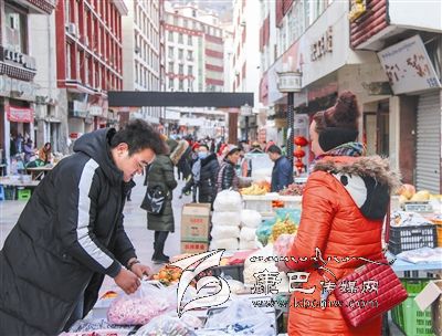 2月3日,記者在丹巴縣嘉絨步行街看到,商店門口年貨琳瑯滿目,透出濃濃的節(jié)日喜慶氣氛。到嘉絨步行街購(gòu)置年貨,已成為許多“老丹巴”多年的習(xí)慣。