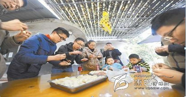 2月6日,雅康高速周公山隧道工地,建設者和家屬們在工地食堂包餃子,迎接新春佳節(jié)的到來。  何海洋 攝