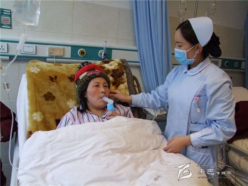 護(hù)士正在護(hù)理即將出院的石渠縣瓦須鄉(xiāng)村民娜姆。