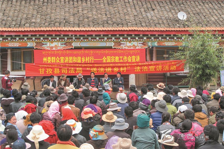 初夏時節(jié),康巴高原,草木蔥綠,生機(jī)昂然。自5月下旬以來,隨著省委副書記劉國中,省委常委、政法委書記侍俊,省委常委、統(tǒng)戰(zhàn)部部長崔保華,相繼在康定市扎西寺、道孚縣靈雀寺、色達(dá)縣喇榮寺五明佛學(xué)院向僧尼代表和州(縣)黨員干部宣講全國宗教工作會議精神后,州、縣(市)黨委快速反應(yīng),一場聲勢浩大的寺廟宣講活動迅即在我州拉開帷幕。