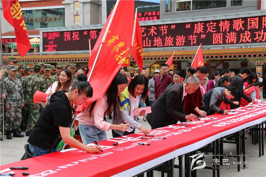 本網(wǎng)訊(記者 宋志勇 文/圖)8月5日,由州文明辦、州直工委、康定市文明辦共同舉行的康定地區(qū)迎“康巴藝術(shù)節(jié)”爭(zhēng)當(dāng)文明市民簽名暨志愿服務(wù)活動(dòng)在情歌廣場(chǎng)正式拉開帷幕。來自康定地區(qū)社會(huì)各界的青年志愿者服務(wù)隊(duì)、巾幗志愿者服務(wù)隊(duì)、工商界志愿者服務(wù)隊(duì)、衛(wèi)生系統(tǒng)志愿者、駐康部隊(duì)志愿者服務(wù)隊(duì)、州級(jí)機(jī)關(guān)志愿者服務(wù)隊(duì)、市直機(jī)關(guān)志愿服務(wù)隊(duì)、環(huán)衛(wèi)志愿者服務(wù)隊(duì)等共計(jì)1000余人參與。
