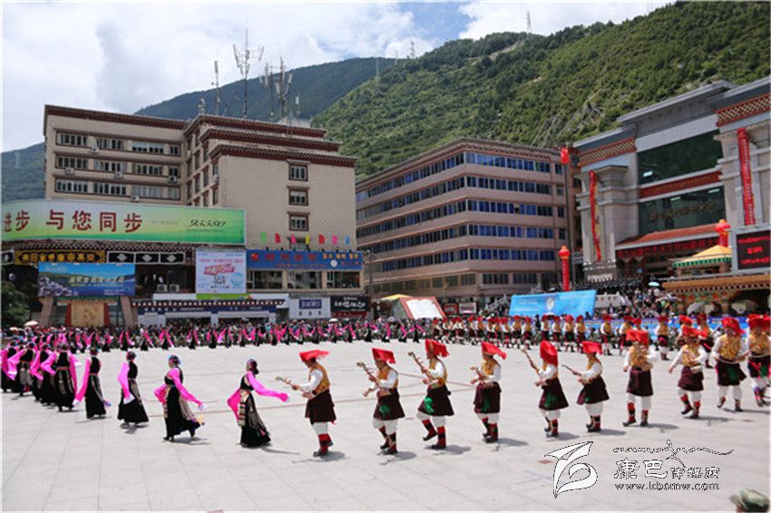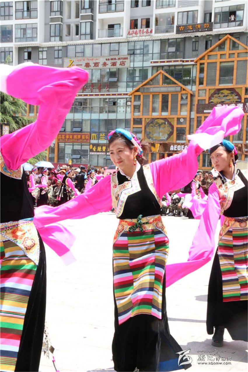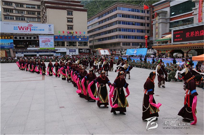 表演在巴塘縣舞之中拉開(kāi)帷幕,上百名身著盛裝的男女演員用歡快的舞步、飄揚(yáng)的云袖向康定市民和四方來(lái)客展現(xiàn)了“弦子之鄉(xiāng)”的淳樸熱情和如畫風(fēng)光。演員們精彩、投入的表演贏得了現(xiàn)場(chǎng)觀眾的陣陣好評(píng)。分別表演完各自的縣舞之后,三縣人馬一同跳起了甘孜州州舞,在熟悉的《康定情歌》旋律之中,男男女女、老老少少300余人盡情舞蹈,時(shí)而大步流星、時(shí)而小心翼翼、時(shí)而熱情奔放、時(shí)而掩面含羞,黑白、紅黃、藍(lán)綠各色服裝隨著音樂(lè)節(jié)拍交相輝映,繪制成一幅團(tuán)結(jié)友愛(ài)的和諧圖景。