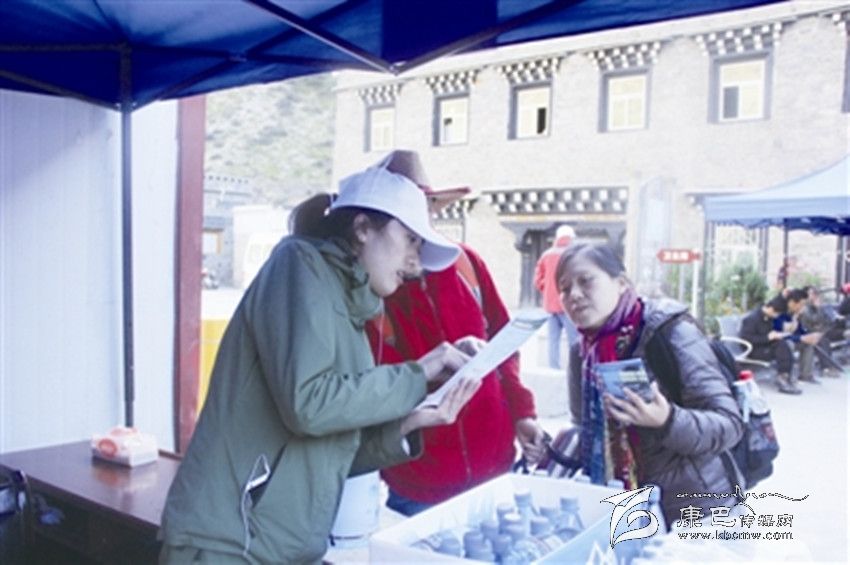 稻城亞丁景區(qū)工作人員為游客提供溫馨服務(wù)。