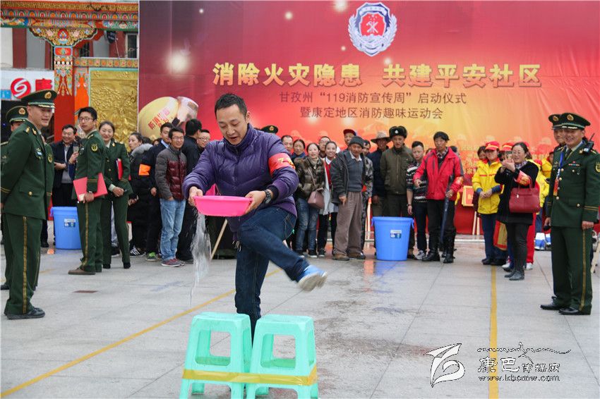 消防趣味運(yùn)動(dòng)會(huì)是本次活動(dòng)的重頭戲,在情歌廣場(chǎng)上來(lái)自康定市光明社區(qū)、水井子社區(qū)、公主橋社區(qū)、子耳社區(qū)等8支代表隊(duì),在州公安消防支隊(duì)隊(duì)員的演示下,進(jìn)行了擔(dān)架救人、障礙運(yùn)水、水帶接力和模擬火災(zāi)撲救四個(gè)項(xiàng)目的比拚。競(jìng)賽中,參賽隊(duì)員各施技能,奮勇拼搏,不僅熟悉了消防知識(shí),還增加了各社區(qū)的感情,比賽在歡快中結(jié)束,并評(píng)出了名次。
