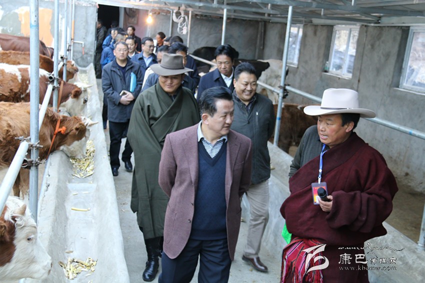 與會(huì)人員在雅江縣八角樓鄉(xiāng)王呷一村奶牛場(chǎng)考察。