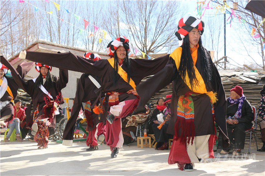 演出現(xiàn)場,80歲的澤則瑪高興地說:“我們一直都是從電視上觀看全國各地舉辦的新春文藝表演,沒想到今年春節(jié)我們小小的一個村子也有了自己的舞臺?!贝竽瓿跻唬迕駛冊缭绯赃^飯,穿上表演服在村級文化活動室等待10點鐘正式演出,活動室外的觀眾們正翹首以盼。伴隨著歡快的歌舞聲響起演員們翩翩起舞,為村子增添了節(jié)日的歡樂。